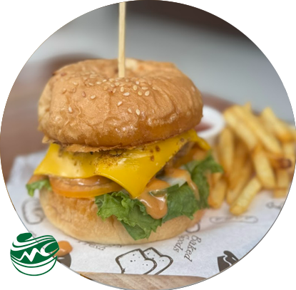 ...Beef Burger - Patty daging sapi panggang yang juicy, disajikan dalam roti burger lembut bersama selada segar, tomat, bawang bombay, dan saus pilihan seperti mayo, keju. Perpaduan rasa gurih, segar, dan smoky menjadikannya menu favorit yang cocok untuk makan siang atau santai bareng teman...