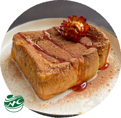 French Toast Lava, roti panggang lembut, disajikan dengan isian lelehan keju atau cokelat yang meleleh saat dipotong. Perpaduan tekstur crispy di luar dan creamy di dadlam; memanjakan lidah—cocok untuk yang dessert spesial...